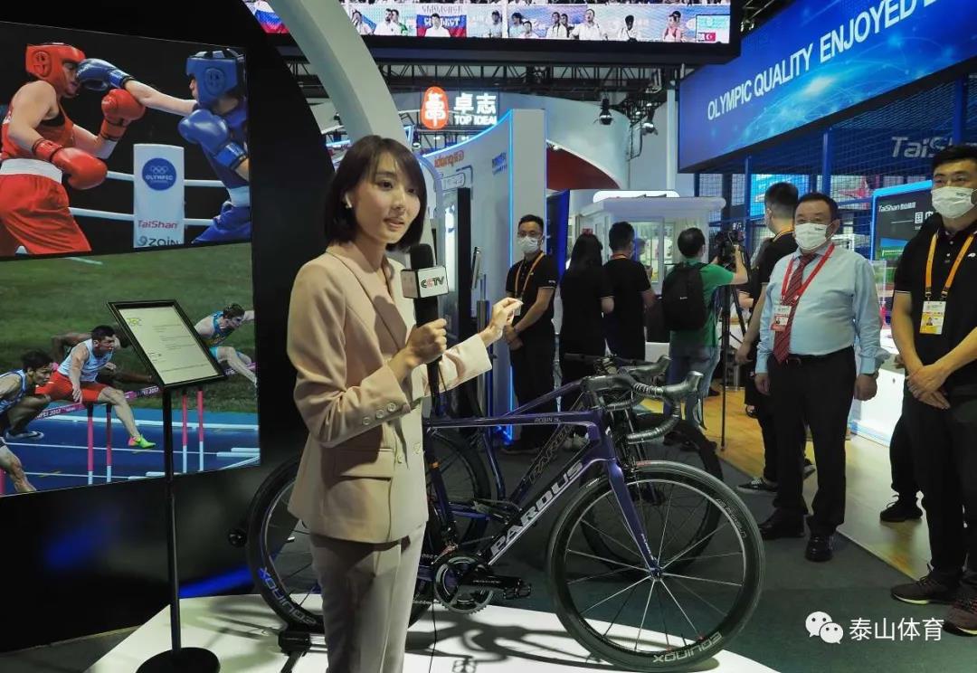 央视新闻频道消博会专题现场直播来到YY易游m6米乐展厅,央视新闻记者宋菀在泰山瑞豹运动自行车展位单手感受泰山瑞豹碳纤维自行车的轻量化高刚性的“黑科技”高性能,圈粉无数。