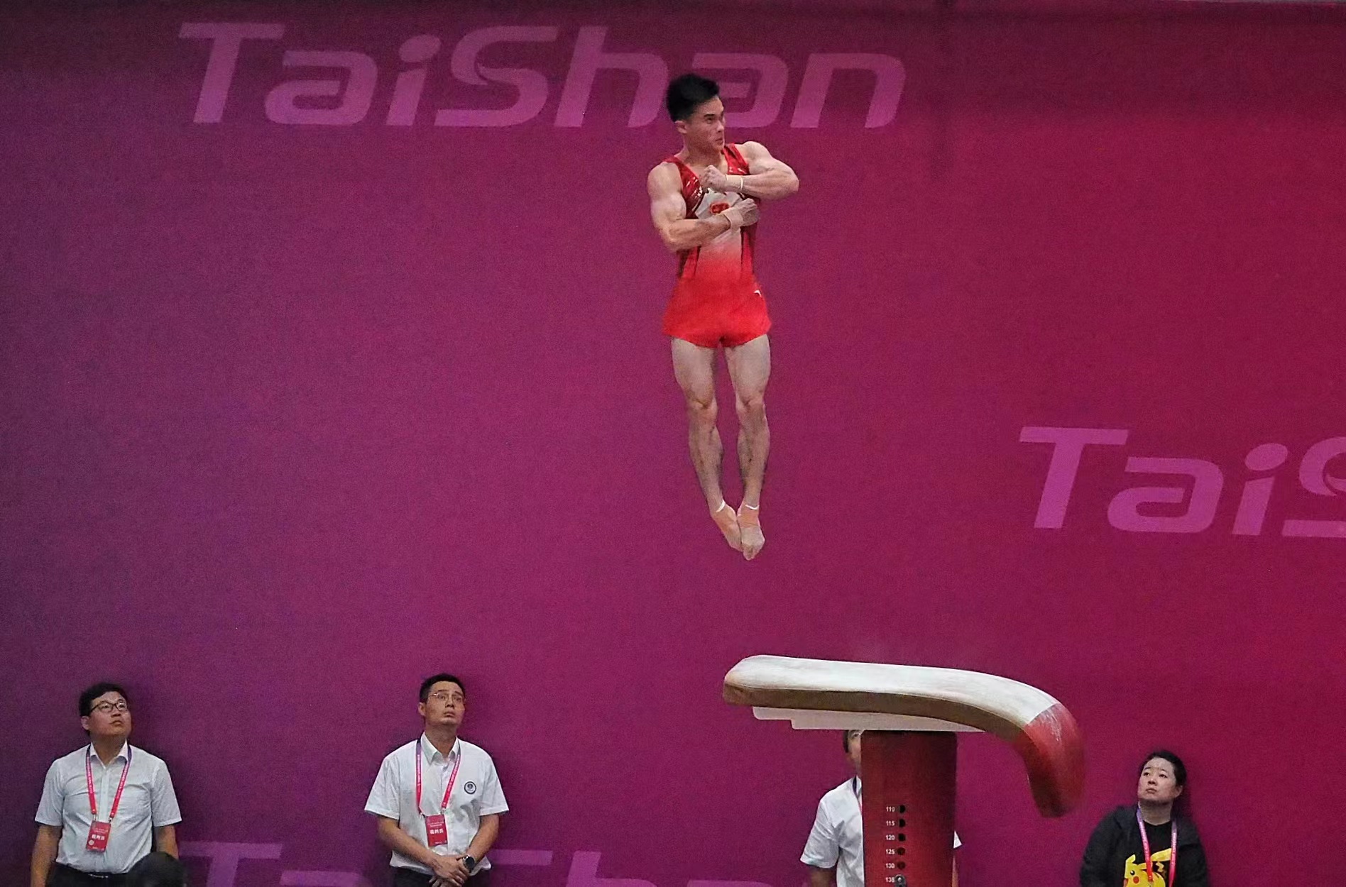比赛为六轮,每支队伍先后完成跳马、自由体操、鞍马、吊环、双杠、单杠的比赛。